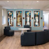 The project involved both renovation and new construction. The chapel was converted into a multi-purpose room with a 200-square-foot addition. We also built an 800-square-foot, two-story lobby and reception area, featuring a steel structure, glass curtainwall system, custom steel stair system, and reception desk. The 14,000-square-foot residence hall was renovated to create exam rooms, offices, and updated HVAC, electrical, plumbing, and finishes.